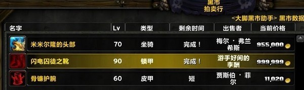 上午看的时候已经是95W5了,晚上不经意间又去黑市瞧了下一个502的鞋子当前的价格N多个9,一开始以为是9W9,仔细定眼一看是6位数,尼玛是99W啊!这年头高帅富无处不在啊.....太喜感了,黑市果断是暴雪回收G的好办法!