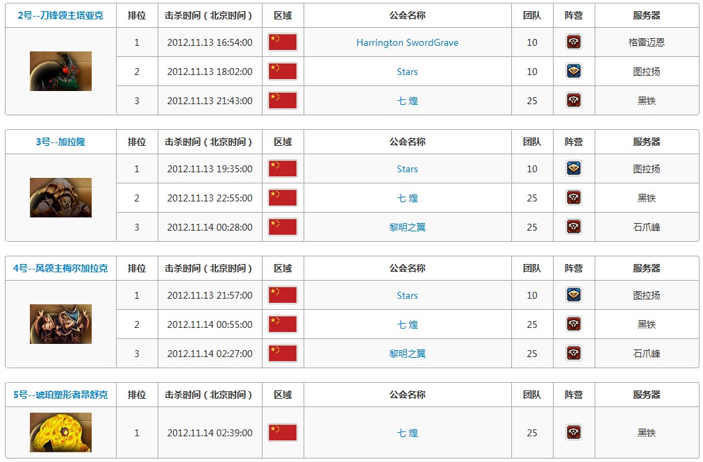 也正式由于一号难度太高,有些公会改打普通的一号,从二号刀锋领主塔亚克开始打H,比如《Harrington SwordGrave》,在放弃一号的情况下,拿下了10人二号的国服首杀。《七 煌》仅仅用了两次尝试,就击杀了刀锋领主塔亚克,而后更迅速的击杀了加拉隆,风领主梅尔加拉克以及琥珀塑形者昂舒克,目前《七 煌》再次回到榜首的位置,他们面前只剩下关底BOSS - 大女皇夏柯希尔。