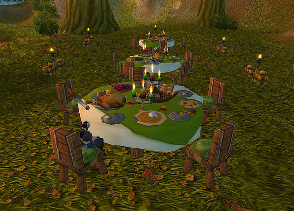 即使在困难时期,艾泽拉斯上下也会一起庆祝感恩节,感谢这片土地的赐予。这可是个在主城外的餐桌上用一大堆美味的食物材料重温你厨艺的大好机会。这也是一个捕猎火鸡的好时机,当然如果火鸡很难捕捉到的话,把你的朋友或敌人变成一只美味的火鸡也是个不错的选择。