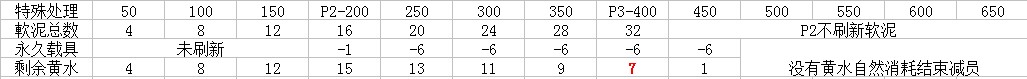 --我们P1已经计算过正常处理载具循环50S,从48S开始减意志可以坚持到6S消耗100能量是不需要消耗任何黄水的,那这消耗的黄水就是都花在这个永久存在P2第一个载具上面.永久载具在消耗完自身能量后开始依赖前面留下的黄水存在,50S里面100能量消耗完还余8S可以近似看做50S需要消耗120能量=6黄水,P1我们一般会有3轮循环留下12黄水加上P2第一次点名的4个总共存留16黄水,后面每50S刷新4水但是维持需要6所以每次消耗2个前面存留的,视频里面3min14S到转P3前画软泥的6min34S间隔200S残留7黄水符合这个理论,为了保证进入P3后这个载具至少还能存在1min不失控团,我们也必须保证在4轮内打进P3.