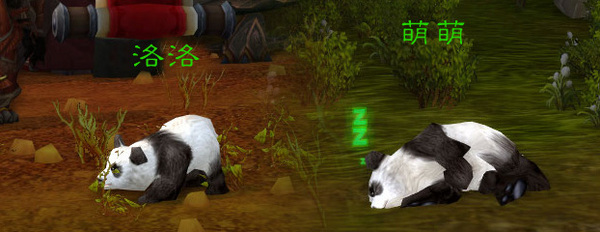 你可以在暴风城的传送区附近找到“萌萌”,而“洛洛”则位于在奥格瑞玛荣誉谷。怎么样,是不是和我们**的两只熊猫宝宝一样憨态可掬?萌萌和洛洛可不只是你想象的这么简单,如果你对它们表达你的喜爱(/Love),轻拍(/Pat)或是拥抱(/Hug)它们的话,你还将得到来自萌萌和洛洛的礼物——[魔力竹笋]。