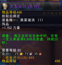 10PT黑雾常驻1152力量。触发6908急速20秒钟。内置105S.