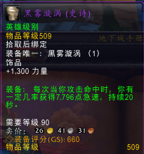 10H黑雾常驻1300力量。触发7796急速20秒钟。内置105S.