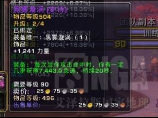 25PT黑雾常驻1241力量。触发7443急速20秒钟。内置105S.