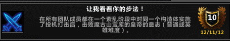 此成就需要在泰坦寒气阶段团队所有成员对同一个BOSS使用投机打击技能,坦克可以在获得投机打击技能后冲锋另一BOSS使用即可。(附:这个成就可能也是这个成就的难点,推荐10人完成,毕竟10个会躲刀的人要好找些,场面也没那么混乱- -)