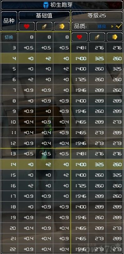 所以我还是推荐上面3种属性的初生胞芽,不推荐325速的初生胞芽.