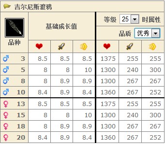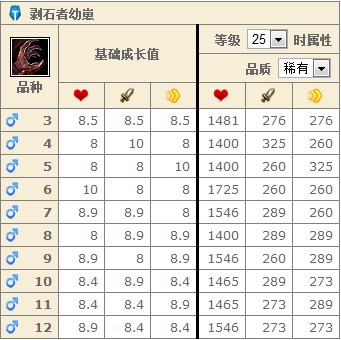 属性选择:对该宠来说攻击力已经不是问题了,生存力才是最大的问题,因此首选HP成长属性品种6.