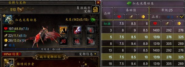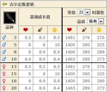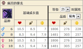 属性选择:虽然龙鹰有4种,但推荐的只有:325速度成长[红色龙鹰幼崽]、[蓝色龙鹰幼崽]和357速度成长[银色龙鹰幼崽],这3种都是品种15,其他的不用考虑了。