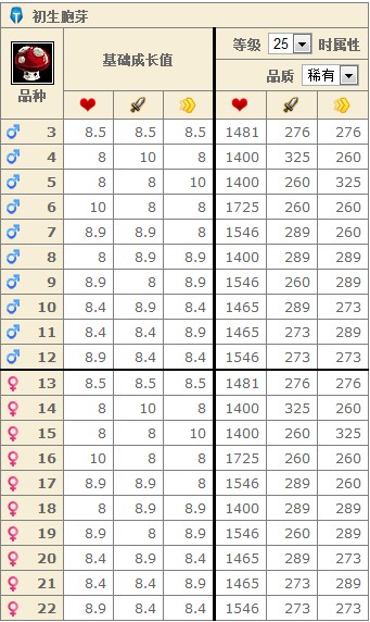 属性选择:推荐攻击成长向品种4;HP成长向品种6.
