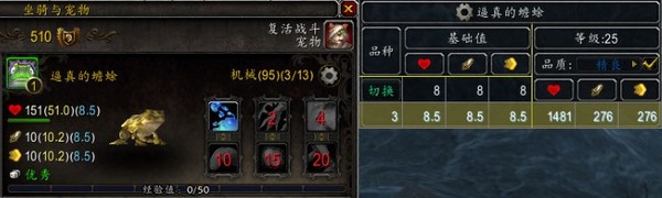战力分析:和各种青蛙完全相同的技能,只是批上了机械系的外皮。喜欢蛤蟆洗脸亲吻流的朋友,可以考虑带上一只,可以减少飞行系宠物的威胁。