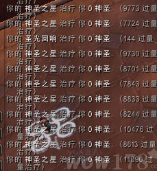 做这个测试的起因是在某天的HOTFIX后,神圣之星治疗量加大,于是我就去试了试,发现这个治疗量出乎意料的高。(先说明下我的牧师算是小号。。其实我是比较喜欢玩牧师的,但是因为10人团配置原因所以玩的猎人。因为我牧师没怎么收集装备,没暗牧装,所以就是双治疗天赋了)