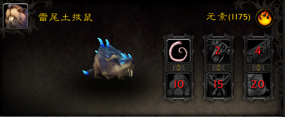 1-[邪能献祭] 2-[痛苦] 4-[流星打击] 10-[暗影震击] 15-[魔法增效] 20-[厄运诅咒]1175-雷尾土拨鼠