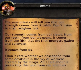 我们的祭司会告诉你:我们的力量来自与克洛释克,别理他们那些宗教胡话。