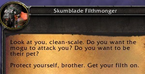 看看你,这么干净。你想被魔古人袭击么?你想被他们奴役么?