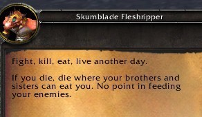 污刃族人在祭司面前表现恭敬,面对克洛斯的子嗣克洛释克会跪地膜拜,氏族表现出对魔古人的仇恨。