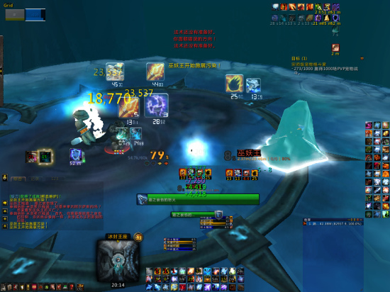 最后当然是冰冠堡垒的主角HLK。相比于普通模式,HLK的血量几乎翻倍,伤害提升,难度陡增。P1多了暗影陷阱,一般来说不存在什么问题,不过对于我这个连开了材质投射都没用的老爷笔记本来说还是有点危险的。言归正传,起手偷药爆发,招狼无视死疽,躲好暗影陷阱。小怪的伤害明显提升了,普通模式下几乎感觉不到存在的维库**发神威,由于不存在疾病,需要亲手击杀。另外因为我没有icc的dbm,不敢一边压维库人血量一边掐进入p2的时间,召唤出第二个维库人的话就灭了,所以还是优先把HLK打进了P2。P2也不能顶着aoe强打巫妖王了,冰球的血量也提高到火焰新星无法秒杀的地步,所以马上背靠王座,无视冰球。下面是最危险的时候,维库人和镜像会同时存在,dps压力和生存压力非常大,萨怒先祖都要看情况交了,回头想来嗜血也可以交在这里,顺利相继击杀维库人和镜像就是胜利。P3只剩下了死疽和黑水,HLK的攻击力虽然高,以瞬发治疗之涌还是足以应付得了。下面力求稳健,P4背靠王座击杀镜像,P5在每次撞灵魂前开启萨怒或石壁。我还在第一次进剑前插了火元素图腾,直接浪费了,这种错误要避免。我以前从来没进过剑,或者说从来没打过HLK,里面似乎就是见到灵魂就躲,没什么难度。总之不论进剑还是撞灵魂,开好技能,平稳输出到10%,HLK也就这么过了。最后一共打了4200万的伤害和720万的治疗量,整个过程非常紧凑,非常刺激。