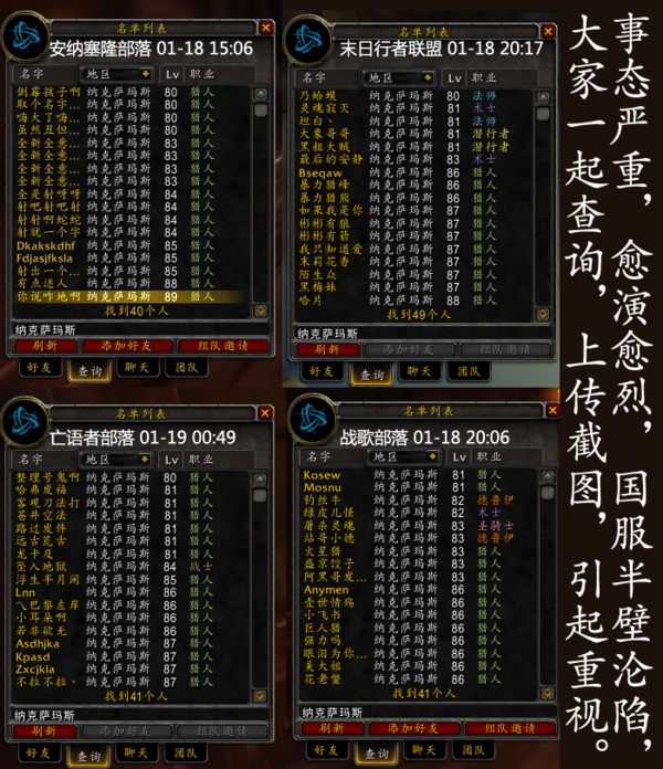 一区危急!二区危急!三区五区十区危急!魔兽世界全区危急!由于巨大的利益吸引,敌势浩大且增长迅猛,