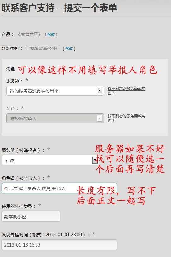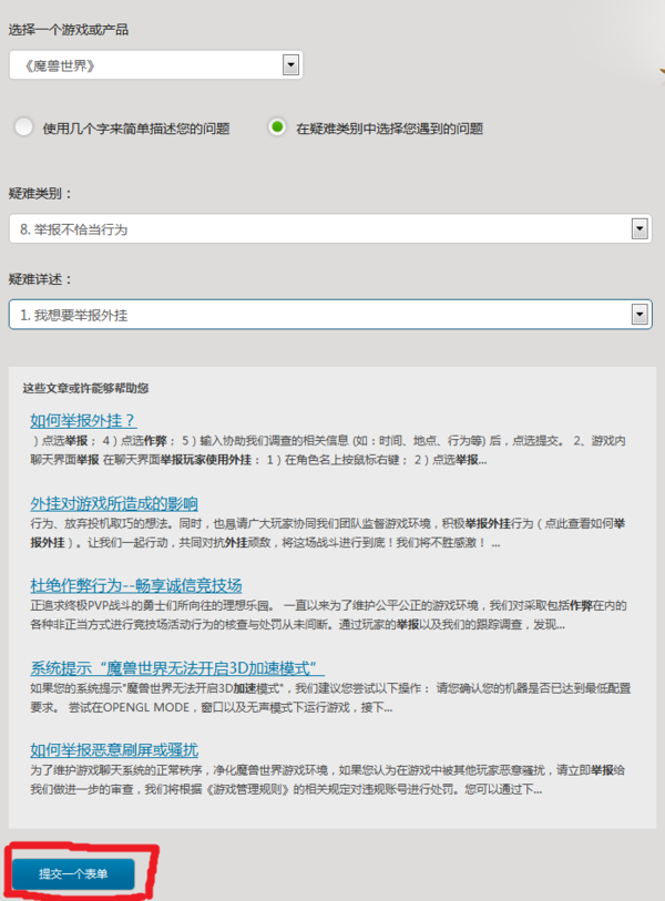3. 如果不愿意在游戏中等待GM回复,可以登录战网提交表单进行举报。
