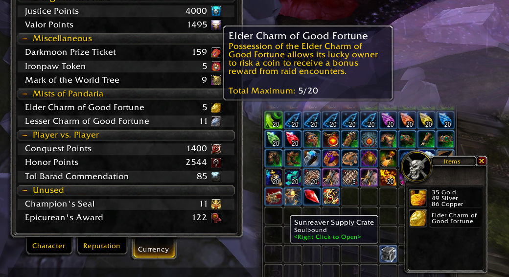5.2测试服中加入了一个新的获取幸运符的方式,那就是日常任务!完成日常任务获得的夺日者补给包(部落)或是肯瑞托补给包(联盟)有一定的几率开出**的幸运符。**的幸运符的上限也从10个变成了20个。