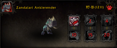 1-[撕咬] 2-[跳跃] 4-[Bloodfang] 10-[Hunting Party] 15-[Primal Cry] 20-[伤口外露]