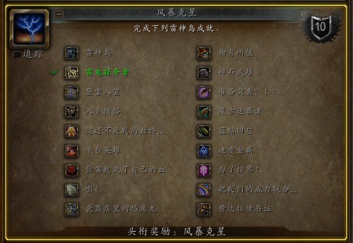 而完成了所有雷神岛的成就,还可以获得头衔“风暴克星”。
