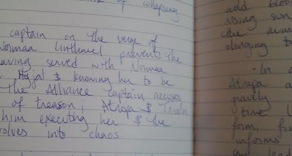 这个过程呢,其实就是给暴雪设定的框架上做写修修补补的工作,这个过程里常常需要喝咖啡、熬夜、还会有没有头绪的时候的饮酒、咒骂、踱步,以及烦躁的蹂躏无辜的稿纸。哦,当然,还要打字。等草稿完成之后,我就进入下一流程——
