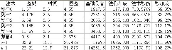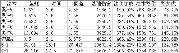 没有4T15的法阵奥法技能伤害,回蓝如下图模型