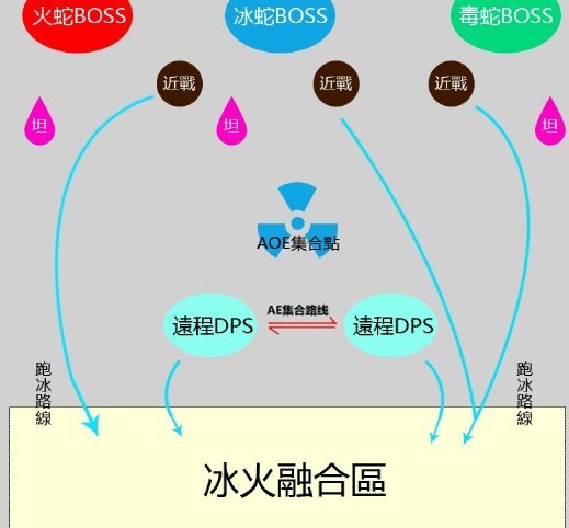 燃渣和奔流是点名技能,根据团队安排的方向跑位。酸雨中心伤害也不算致命,有时光盾可以不跑。