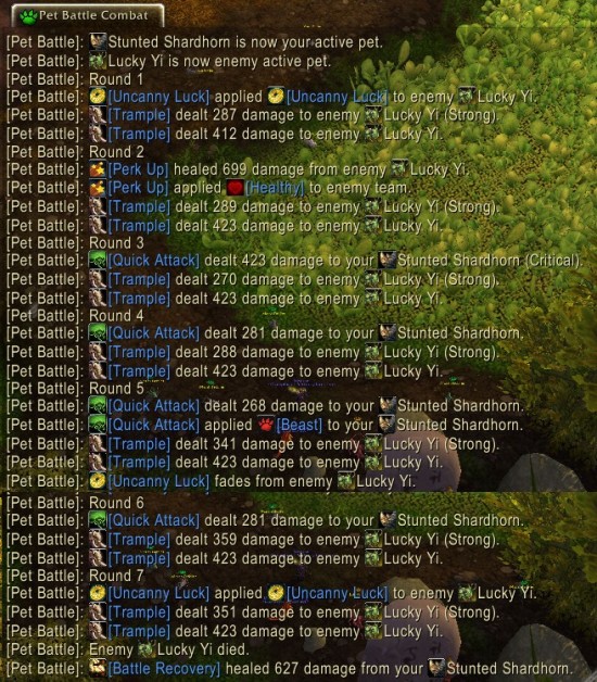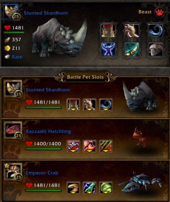 这种犀牛,只有两种属性,高血或者高攻,速度都是211, 非常理想的PVE宠物, 而它带的一个主要技能 - 践踏, 更是在5.2 大放异彩。
