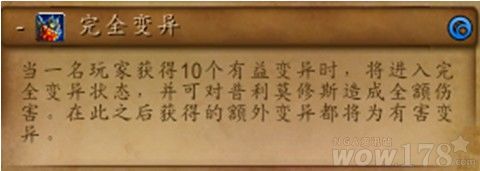 ·突变玩家:当玩家踏入突变之池时,它将被吸收,对该玩家造成600,000点自然伤害并使其获得一个有害变异。对变异玩家使用驱散将移除所有变异。