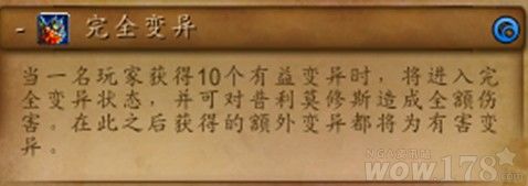 ·突变玩家:当玩家踏入突变之池时,它将被吸收,对该玩家造成600,000点自然伤害并使其获得一个有害变异。对变异玩家使用驱散将移除所有变异。