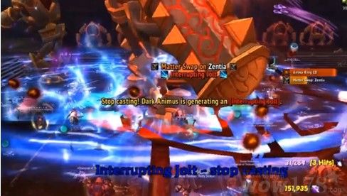 震荡干涉:心能达到75时,降施放一股爆裂能量,造成35万自然伤害并打断所有玩家的施法。