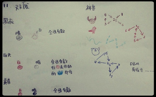 关于几个神兽:本来还说要记图呢,结果招神兽的队友说。。。DBM有指示,跟着走就是了。。。完成图形之后神兽会有以下效果,应该是针对boss强力技能召唤克制的神兽技能,看压力用吧。。
