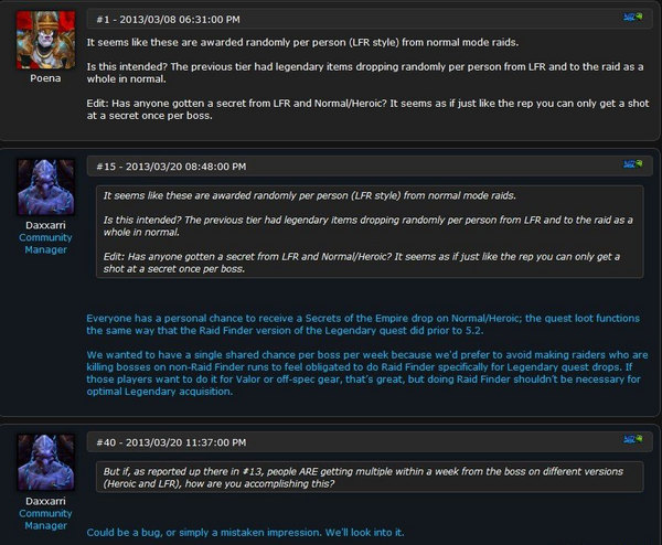 5.2补丁中,暴雪新增了黑王子的传说任务,昨日官方蓝贴回复了玩家对于橙色任务物品掉落机制的疑问。