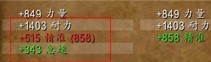 重铸前小编把护腕穿上与脱下之后的精准对比,发现护腕确实增加了925点精准。(4651-3726=925)