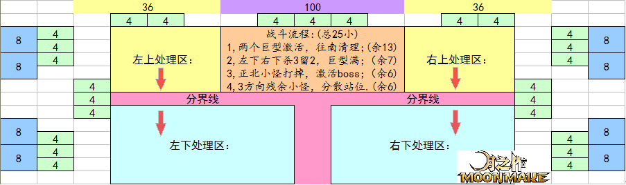 击杀的时候以坦克拉巨型魔像的位置为准逐个点杀,点满9个能量充满后激活boss进入P2专心Boss输出。