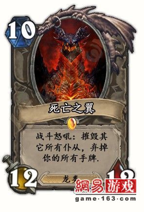 术士专属。如果你是术士,那么你赢了,如果你不是术士,那么跪了吧~4消耗,炉石传说最佳清场牌,比扭曲虚空不知道好到哪去~最佳情况,你的死亡之翼还剩1点血,然后你使用暗影烈焰,对敌方所有仆从造成12点伤害。加上死亡之翼本身效果,对手此刻不可能有任何仆从活下去。