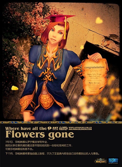 几年前,在魔兽玩家中,制作《魔兽世界》主题的毕业纪念册曾经是每年这个季节最受欢迎的活动之一。千夜冰——曾经公认的魔兽美术设计大师,是这项活动最初的发起者。原本他只是单纯的为了纪念告别已久的大学校园与曾经相处了四年,难舍难分的同学。想不到的是,这本精致的纪念册一经发表,居然引来了玩家们的竞相模仿。于是,《我们毕业了》这个主题,便一度成为了魔兽玩家圈中最值得一看的原创图片之一!