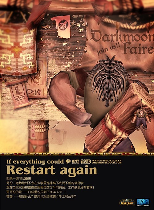 [5]如果一切可以重来,劳伦·宅蹄绝对不会在大学里选择高不成低不就的草药学,现在自己已经在雷霆崖周围晃荡了半月有余,工作依然没有着落!更可怕的是——口袋里也只剩下3G42Y7T!!等等……那是什么?暗月马戏团招聘斗牛士和公牛?