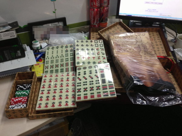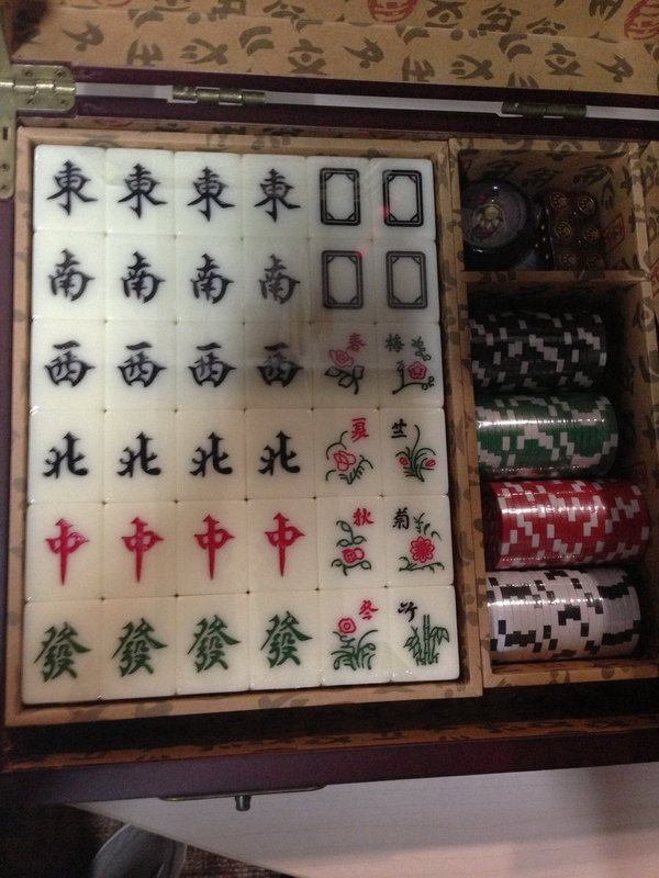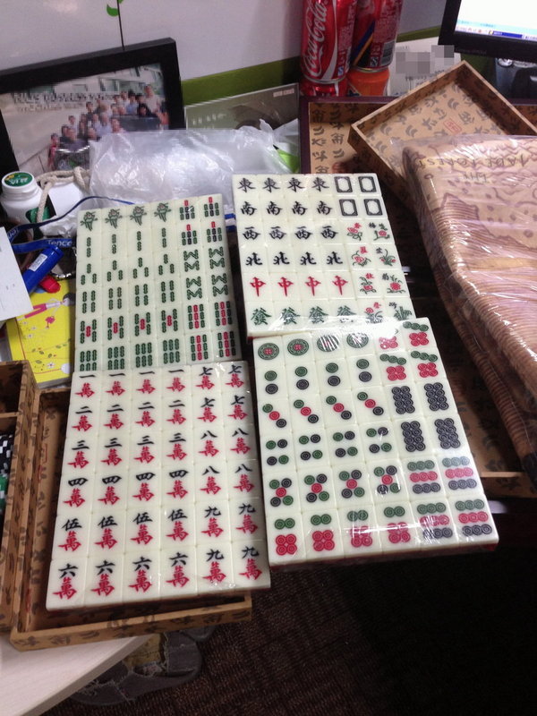 拿开桌布之后就是下面的麻将+各种小玩意。