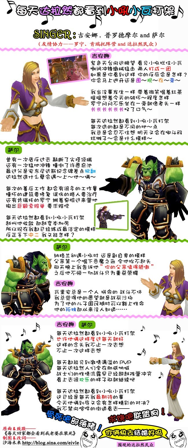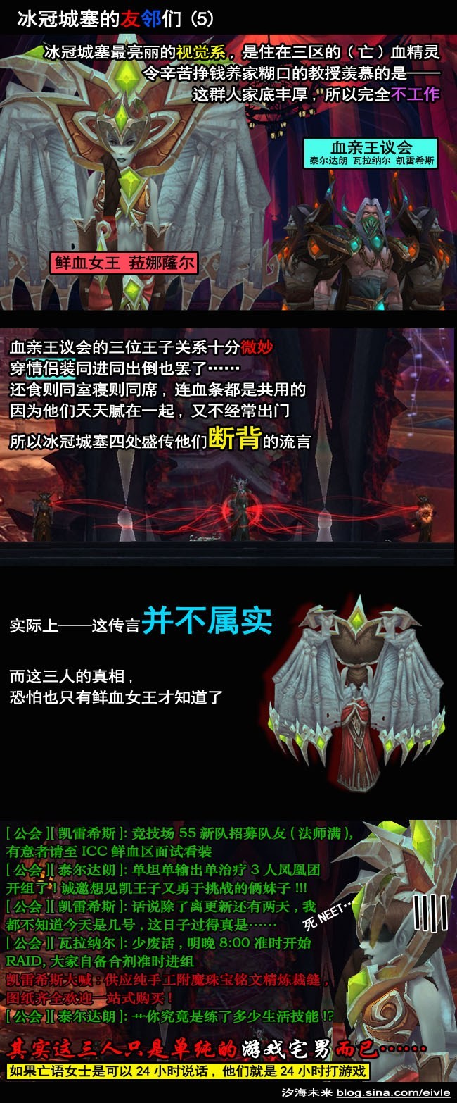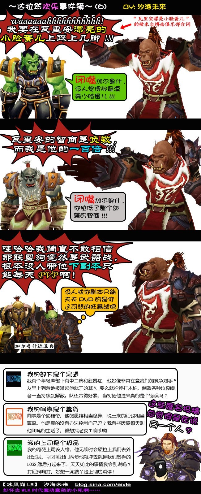 她的作品题材丰富,立意多变。但每一幅作品都从另一个(非正常人的)截然不同的视角去观察、讲述和诠释那些我们耳熟能详的魔兽世界首领们的故事。其中有些令人忍俊不禁,有些令人潸然涕下,而更多的则是百分百的三观尽毁。我们经过(严格的)筛选和整理,将优秀作品归纳成了以下图集,希望大家能够喜欢!