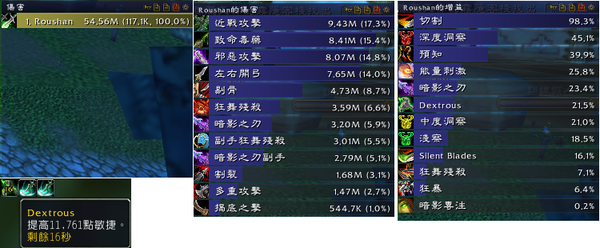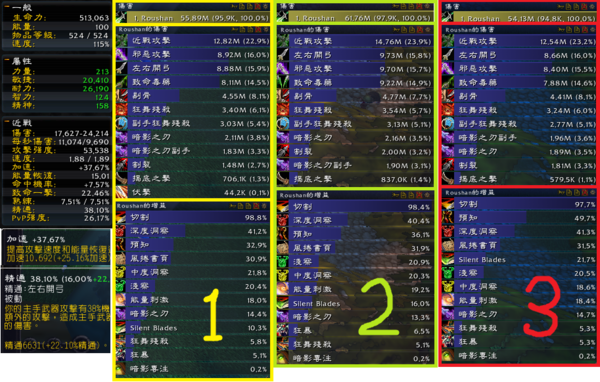 点评:取了WOL上25H铁琼战斗贼前20的杀戮伤害占比,平均约等于5%。下图4T16木桩数据,杀戮平均占比11%,提升还是比较明显的,不过相比4T15套装效要逊色不少。