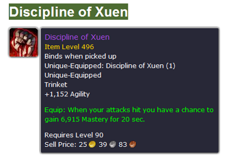 装备:当你的攻击命中时,你有机会获得6915点精通持续20秒。
