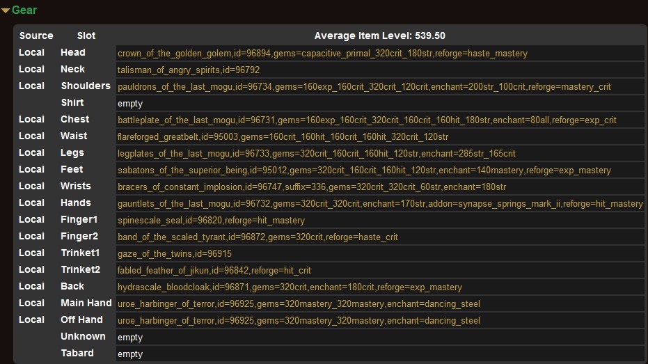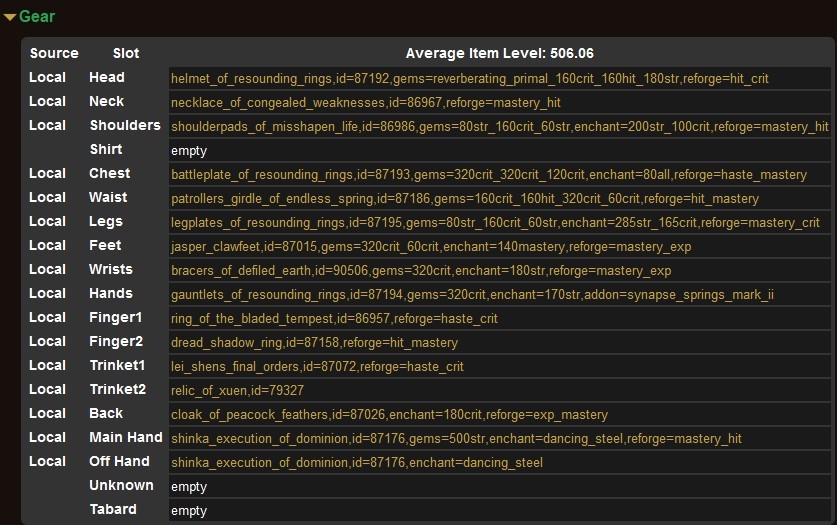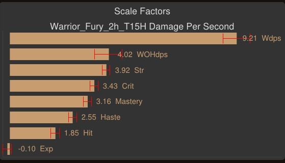 那么来看看simulationcraft的模拟情况(我选取了其内建的两个样本,T14HFURY2H、T15HFURY2H):
