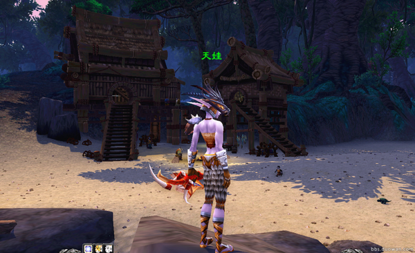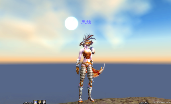 这套换化因为是要山寨风格,所以才选用这样的头和弓,不追求山寨风的是完全可以换其它模型的,但唯独肩甲和胸甲不能换,风景可全在这光溜溜的肩上呢。不要小看这个胸甲,它是少见的没有衬肩的胸甲,为了它我把和我不相干的锻造冲到了105.{2000G啊}