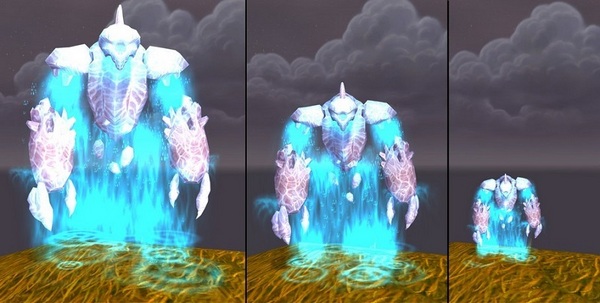 旧版水元素宠物外观。上图中分别为:使用了变大雕文,正常,使用了变小雕文之后的尺寸