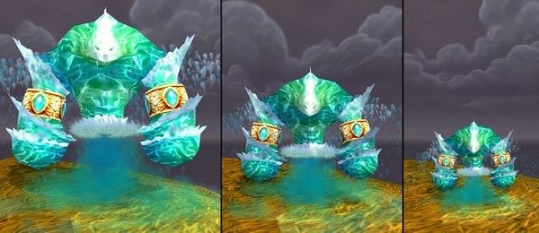 新版水元素宠物外观。上图中分别为:使用了变大雕文,正常,使用了变小雕文之后的尺寸