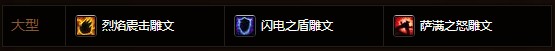 大雕文:[烈焰震击雕文]/[治疗之泉图腾雕文]、[闪电之盾雕文]、[萨满之怒雕文]。