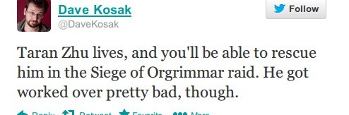 “老祝还活着,你还得在围攻奥格瑞玛的副本里去救他,当然,他伤得不轻。”