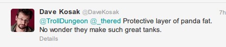 答:厚厚的熊猫脂肪吸收了大部分攻击,所以你看,熊猫坦克,好顶赞!